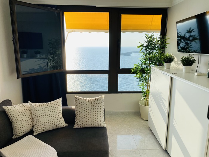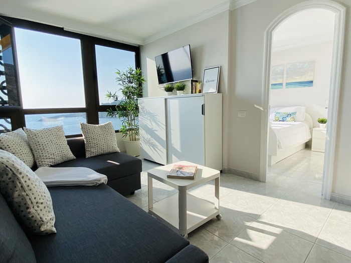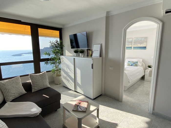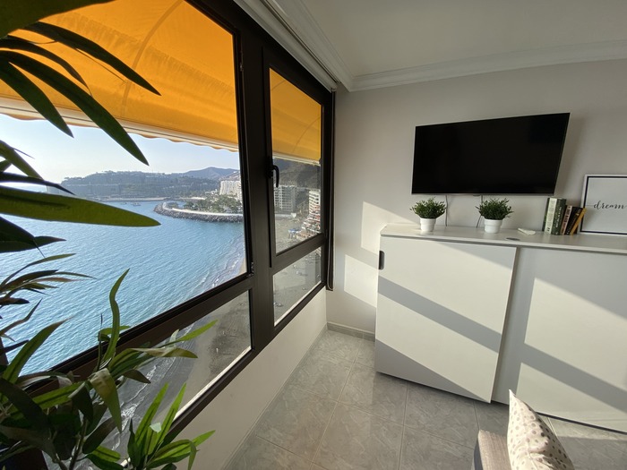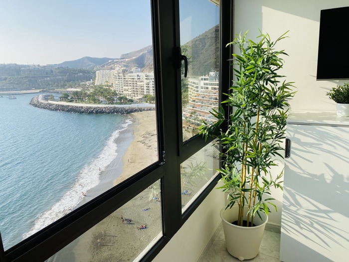 Situado en primera línea de la playa en la planta mas alta (Planta 12) . Apartamento reformado con salón, dormitorio, cocina y baño. Vista mar directo desde el salón y desde el dormitorio. Ascensor. Puerta de acceso directo al paseo de la playa. Son muy pocos pasos para llegar a la playa. Zona tranquila, sin ruido de trafico, ni coches. Caminando en el paseo son pocos minutos para llegar a Arguineguín o a Anfi.