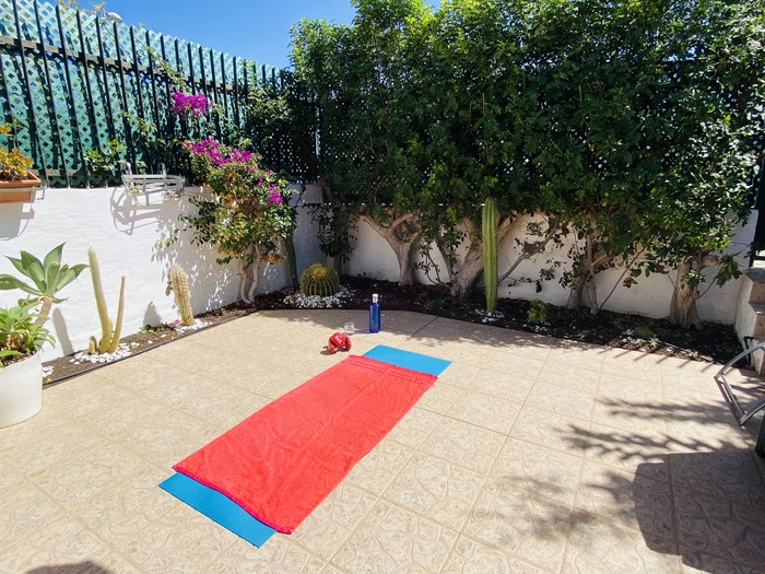 A lovely place to stay. The bungalow has everything you need with two patios for relaxing and getting the sun and one has a barbecue. The sun goes off the patios around 4.15 but this was mid-winter and would be there much longer later in the year. The hosts were very helpful and friendly. It is within very easy walking distance of the Cita Center where there are two supermarkets and it's about an 8 minute easy walk to the Yumbo. It is also an easy walk to the beach and its bars and restaurants. Excellent shower and comfortable double bed. The location is very peaceful with just some occasional noise from the Cita Center but nothing to disturb our sleep. We have no hesitation in recommending this place to stay.