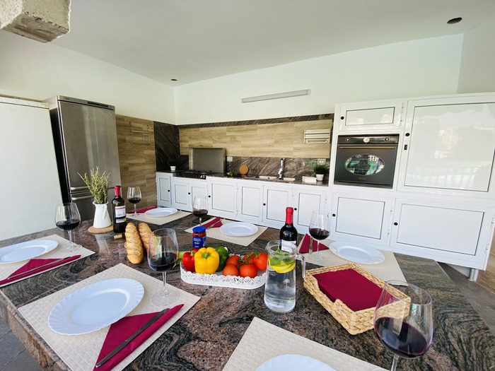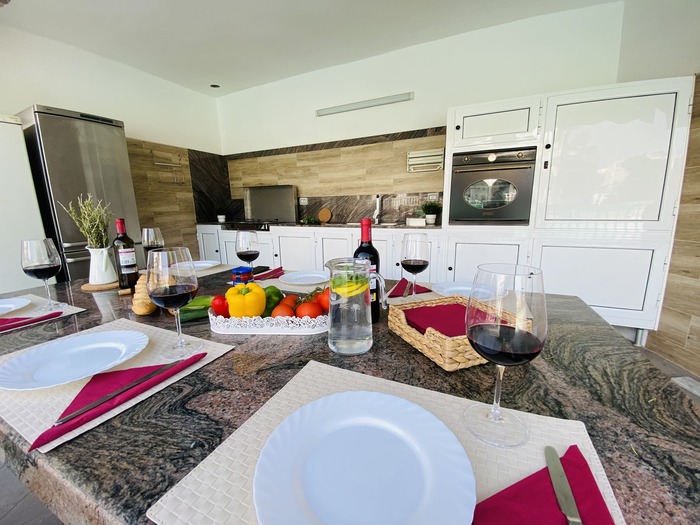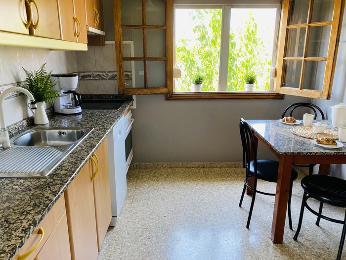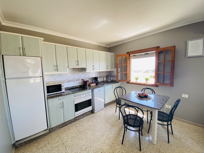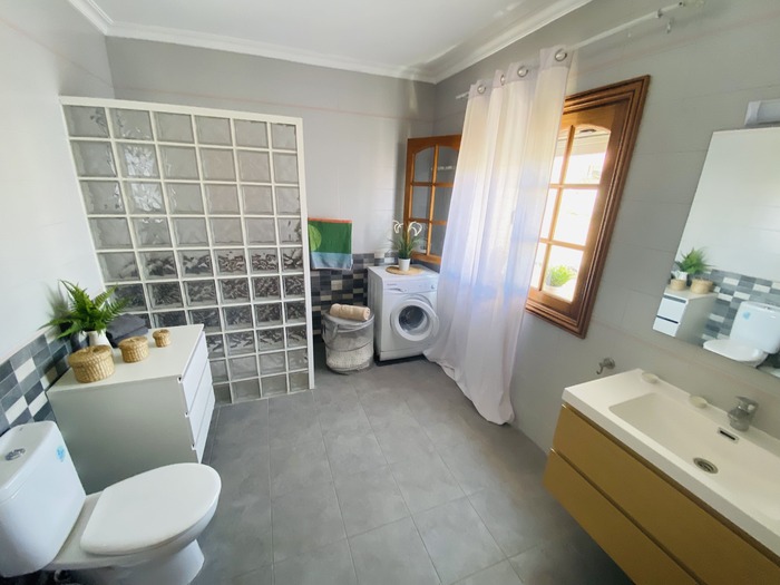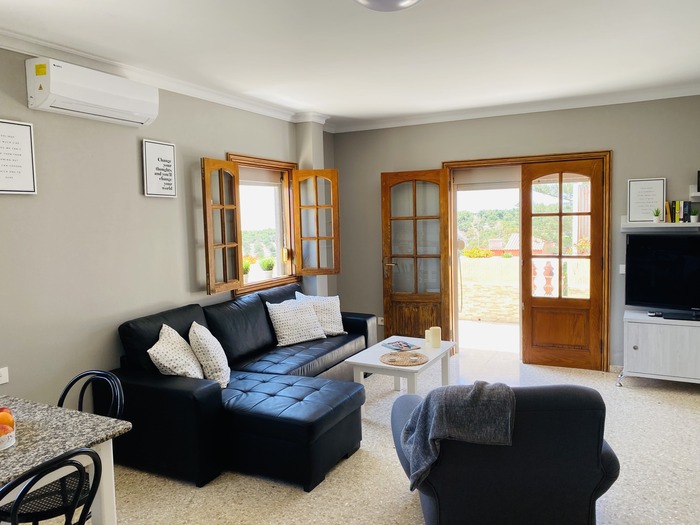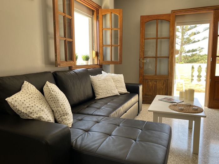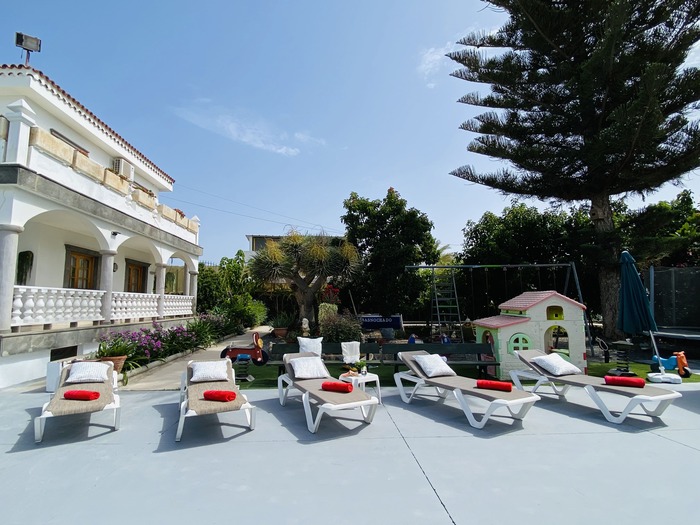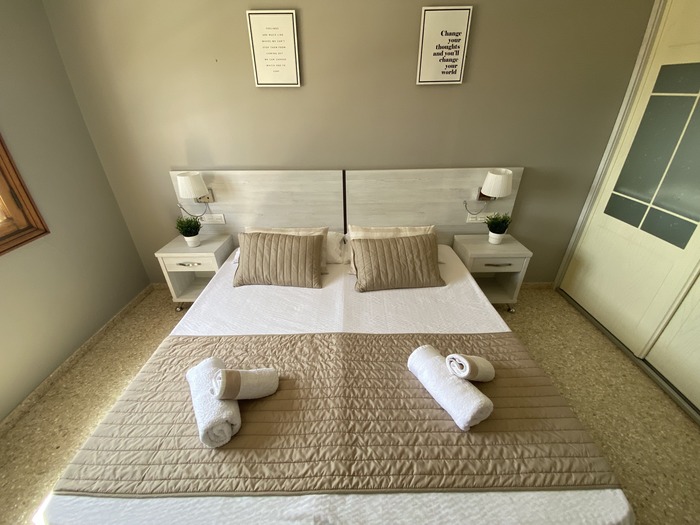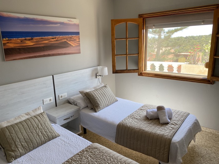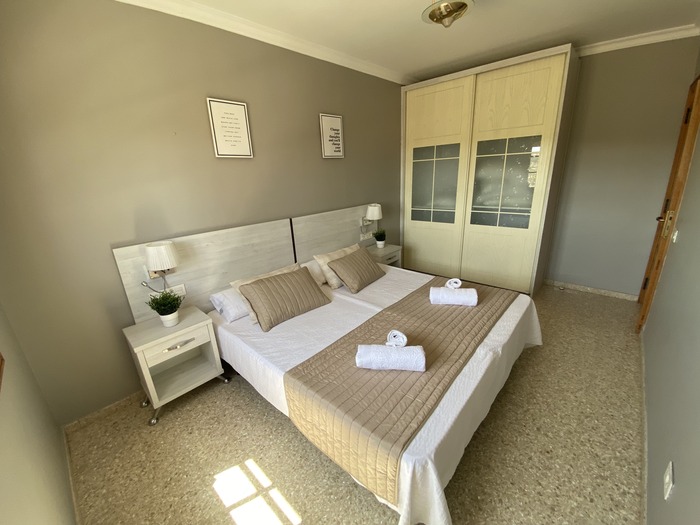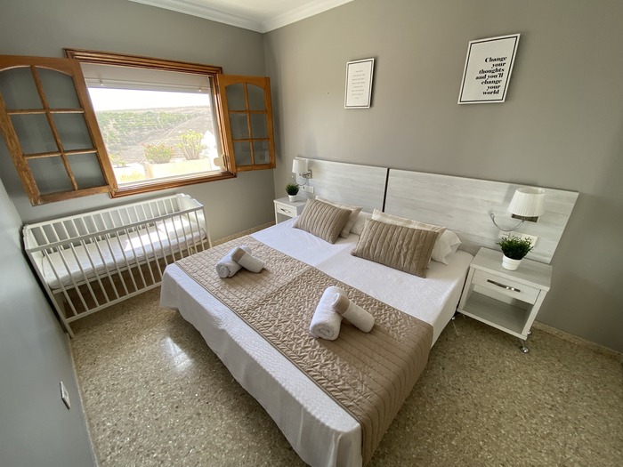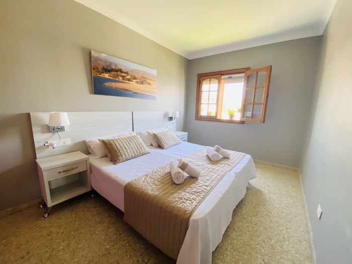 2 Apartamentos con puerta comunicante situado en toda la planta arriba de la Villa, con entrada independiente. Cada apartamento consta de 2 dormitorios, Salón con sofá cama, cocina, baño y terraza. Tienen el USO EXCLUSIVO de todas las zonas exteriores: piscina amplia y climatizada, zona de hamacas, jardín, cocina y barbacoa en la piscina con bancos y mesas y baño completo en la piscina. Max. 12 personas.